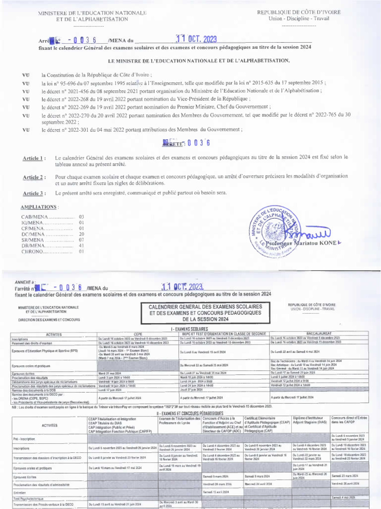 Arrêté 0036 du 11 OCTOBRE CAL EXAMENS 202420231011_12303929 | PDF