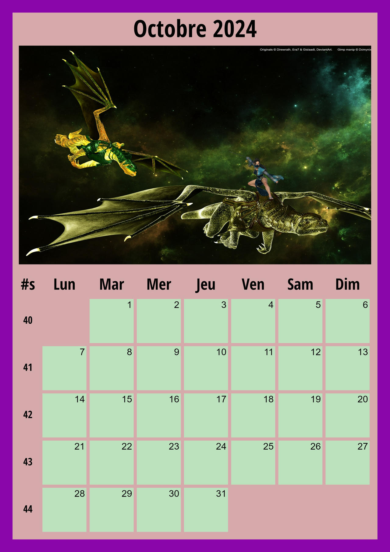 010 Calendrier photo octobre 2024 kalendrier by Domynixx on DeviantArt