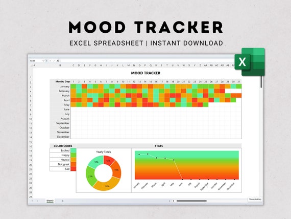 Digital Mood Tracker Excel Spreadsheet Instant Download Etsy
