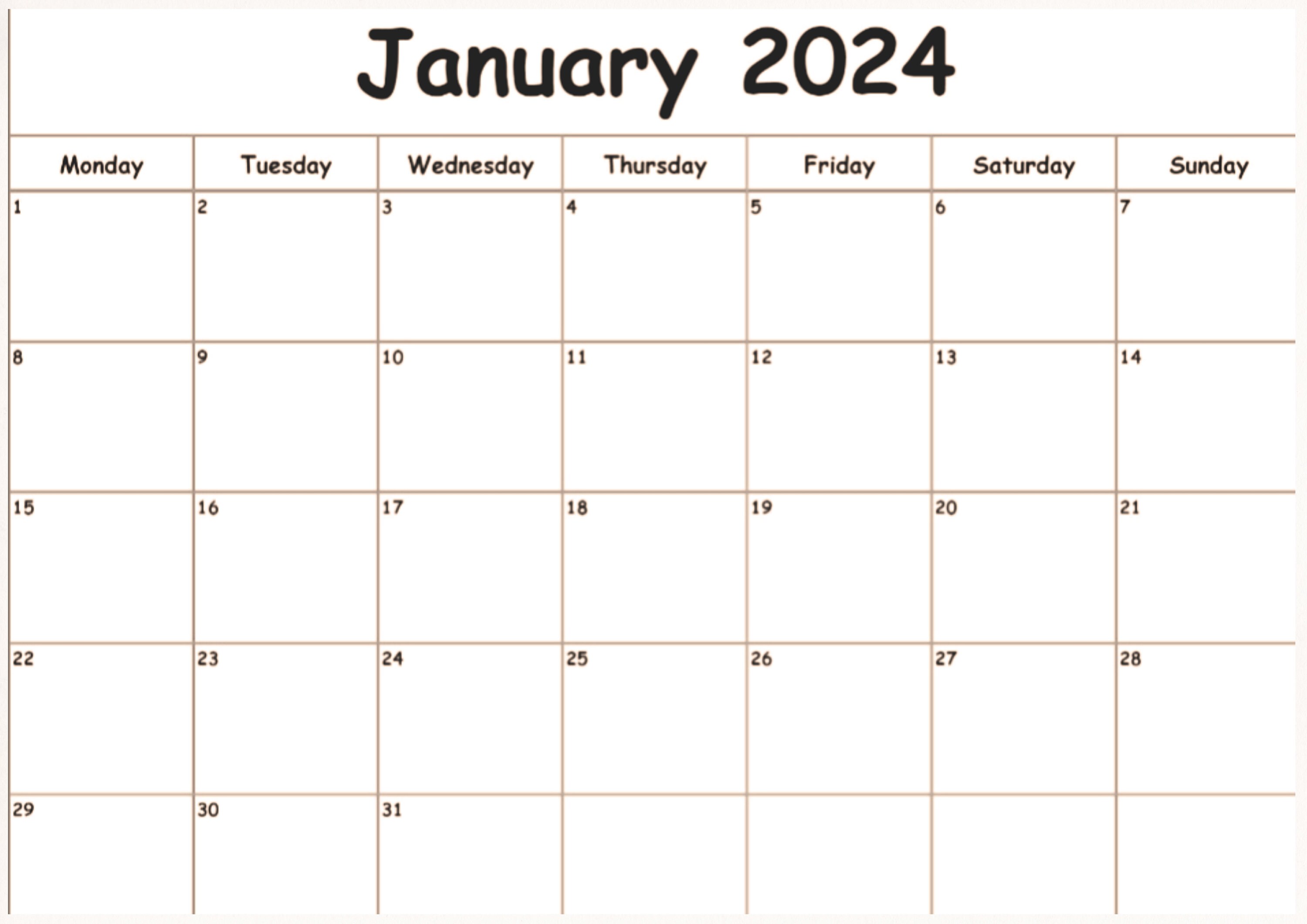 January 2024 Month Calendar Instant Printable Digital Download Etsy
