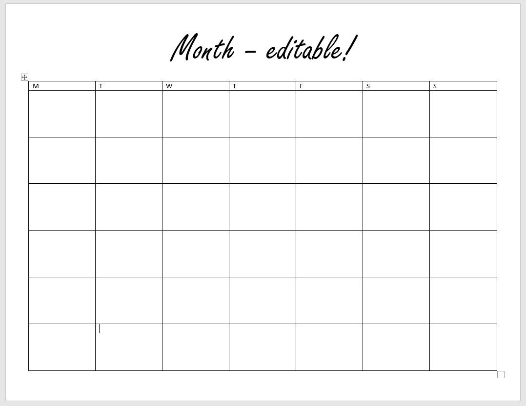 Basic Calendar Month Microsoft Word Template Editable Etsy